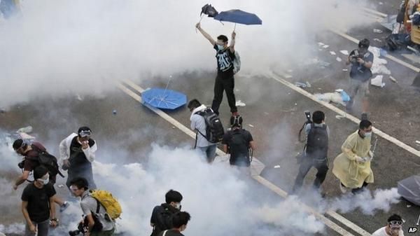 : Hong Kong police use tear gas to disperse protesters - see footage of clashes