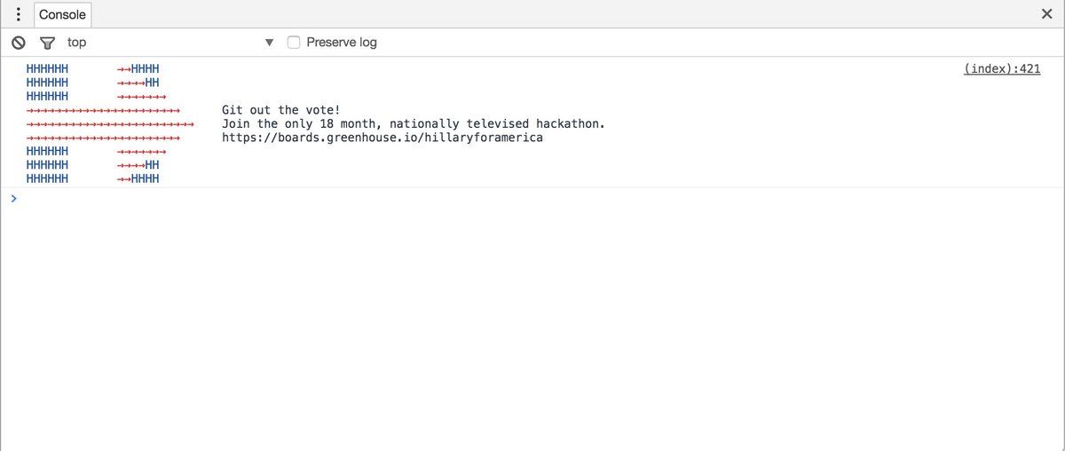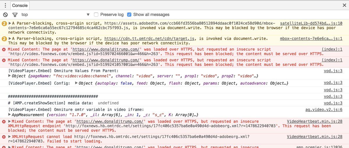 : JS console output from each candidate's website #cleanupyourerrors