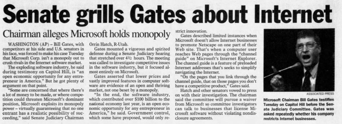 : Your 1998 tech update: Senate Grills Gates About Internet.